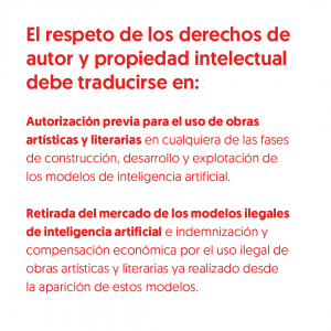Blog de Por & Para > Se ha hecho público hoy 2 de octubre de 2024 este manifiesto: Organizaciones de la Cultura denuncian las infracciones legales y los riesgos de la Inteligencia Artificial Generativa: piden al Gobierno, a la Administración y a las empresas de IA respeto y protección de sus derechos y puestos de trabajo. > Manifiesto-IA3